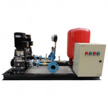 定壓補水裝置設備采用係統靜壓作為膨脹水箱內的設計初始壓力水頭,采用保證係統內熱水不汽化的壓力作為膨脹水箱內動行終端壓力水頭。初始運行時首先啟動補水泵向係統及氣壓罐內的水室中充水,係統充滿後多餘的水被擠進膠囊內。因為水的不可壓縮性,隨著水量的不斷增加,水室的體積也不斷的擴大而壓縮氣室,罐內的壓力也不斷的升高。當壓力達到設計壓力時,通過壓力控製器使補水泵關閉。當係統內的水受熱膨脹使係統壓力升高超過設計壓力時,多餘的水通過安全閥排至補水箱循環使用,當係統中的水由於泄露或溫度下降而體積縮小,係統壓力降低時,膠囊中的水被不斷壓入管網補充係統的壓降損失,當係統壓力至設計允許的最低壓力時,通過壓力控製器使補水泵重新啟動向管網及氣壓罐內補水,如此周而複始。產品特點  一次充氣可保證長期使用   罐體內氣水不接觸,保證水質不受汙染,且不腐蝕罐體 能消除管網中的水錘及噪音。